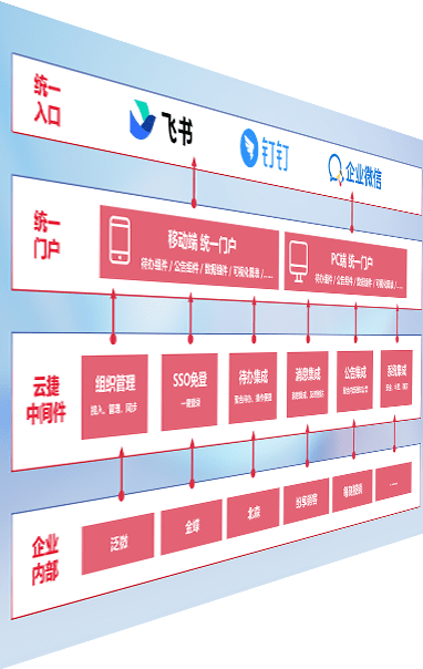 对协作平台提供支持服务,,,,支持企业应用与协作平台对接,,,,包含组织同步、、、、消息集成、、、、待办集成等。。。。支持目前主流的协作平台:钉钉、、、、企微和飞书。。